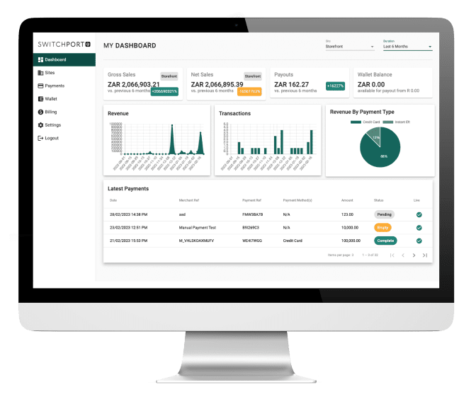 Start accepting payments through SwitchPort, instant EFT transactions settled directly to your bank account